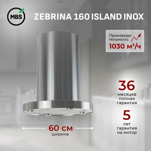 Кухонная вытяжка островная MBS ZEBRINA 160 ISLAND INOX/60 см/производительность 1030м3/ч, низкий уровень шума: сравнение цен, характеристики, фото, актуальное наличие и цены.