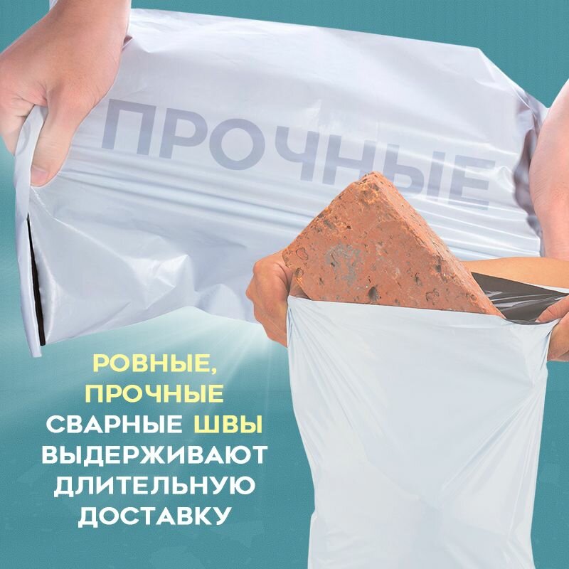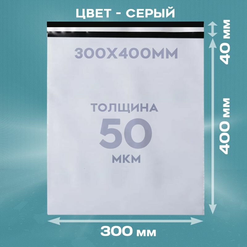 Пакеты изготовлены из высокопрочного пятислойного полиэтилена. Клеевой слой - высокоадгезивный перманентный клей (15мм). Толщина пакета - не менее 50мкм. Цвет - светло серый. Размер пакета: 30х40 см.