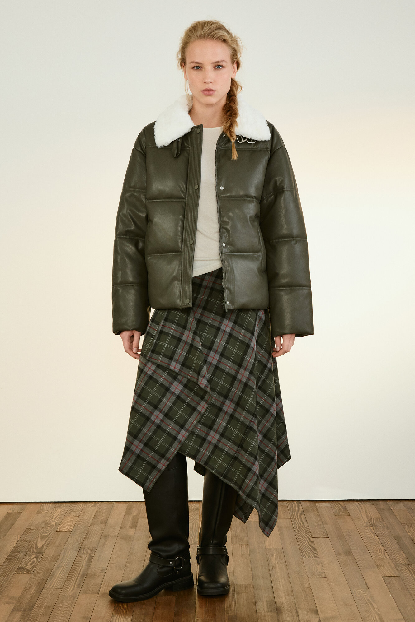 Куртка кожаная Befree Woman Mix&Match, размер XS, хаки/оливковый