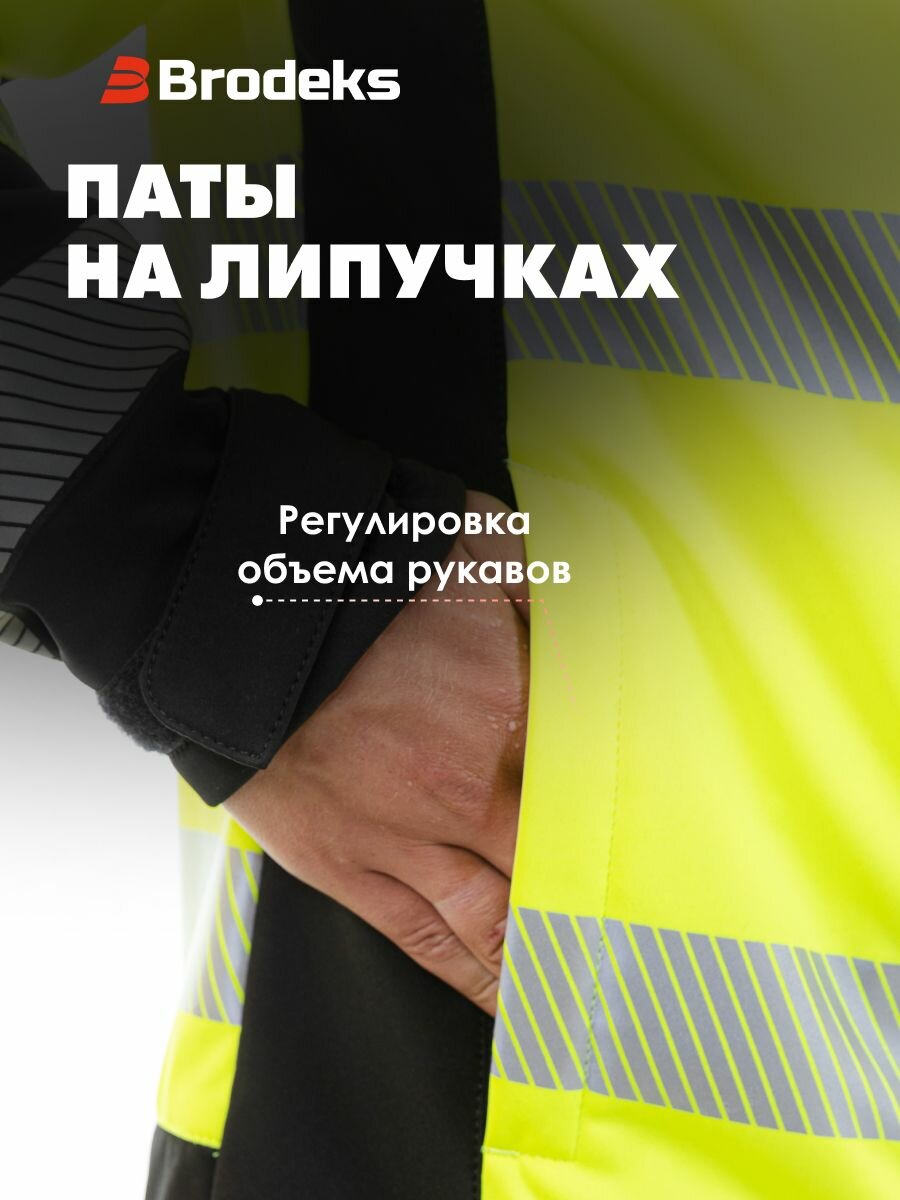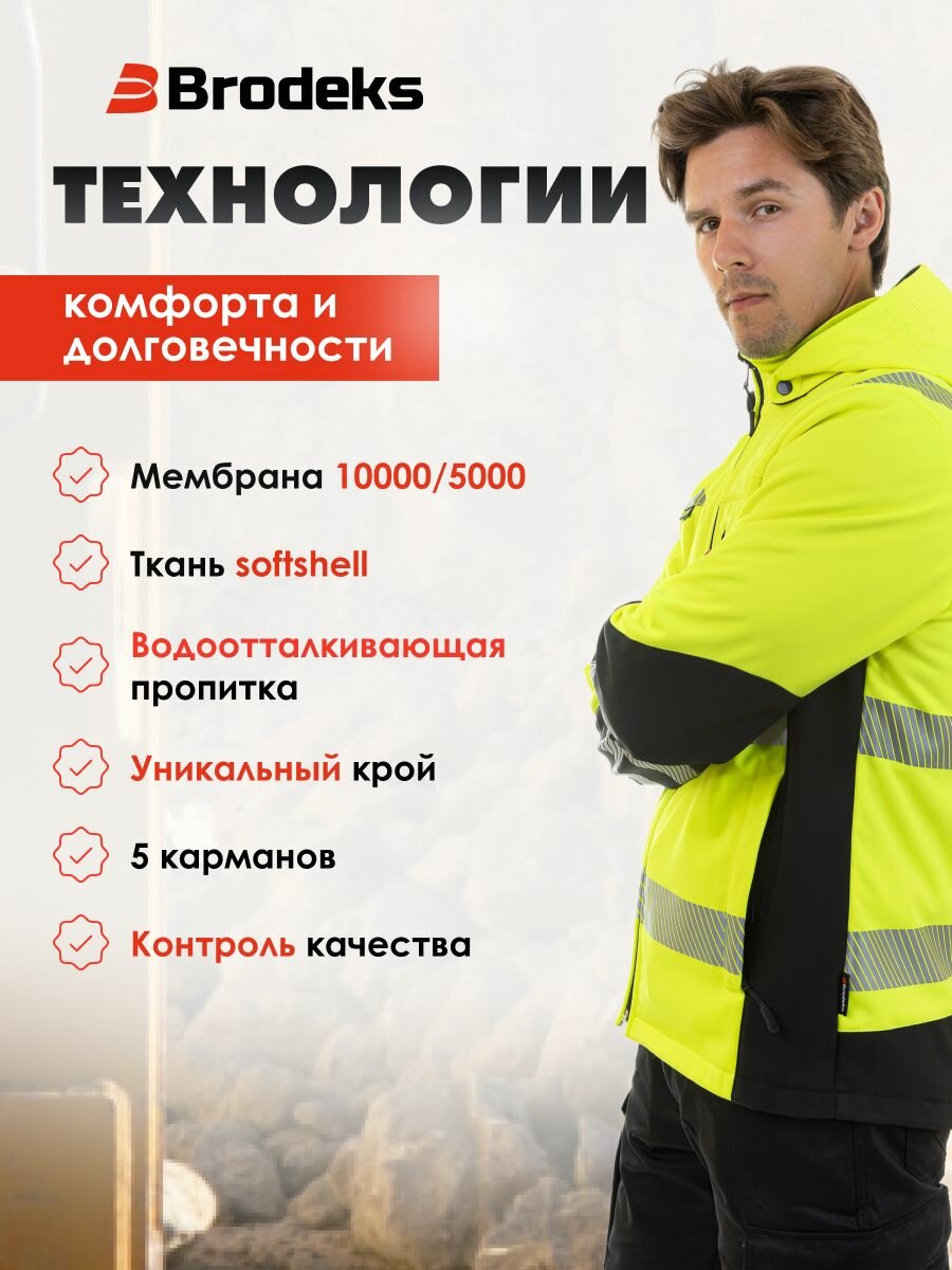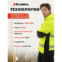 Сигнальная куртка Brodeks KS 227 – лёгкая и тёплая куртка из софтшелла для повседневной носки в осеннюю непогоду. Сшита из эластичной мембранной ткани с флисовым внутренним слоем. Защитит от дождя и ветра. В ней будет тепло и сухо в межсезонье (показатели мембраны: 10 000/5 000). Куртка хорошо сидит за счёт тянущегося материала и анатомического кроя. Высокий воротник, капюшон с регулировкой, утяжки на рукавах помогут эффективно сберечь тепло и не промокнуть. У куртки современный, стильный дизайн. Она не похожа на обычную спецодежду, при этом отлично выполняет свои защитные функции. Комбинация из яркой флуоресцентной ткани и широких светоотражающих лент обеспечивает повышенную заметность в условиях плохой видимости. Изделие сопровождается сертификатом 2 класса. Подходим сотрудникам газовой, нефтяной, строительной отраслей и всем, кому необходимо носить сигнальную спецодежду и чувствовать себя комфортно весь рабочий день.