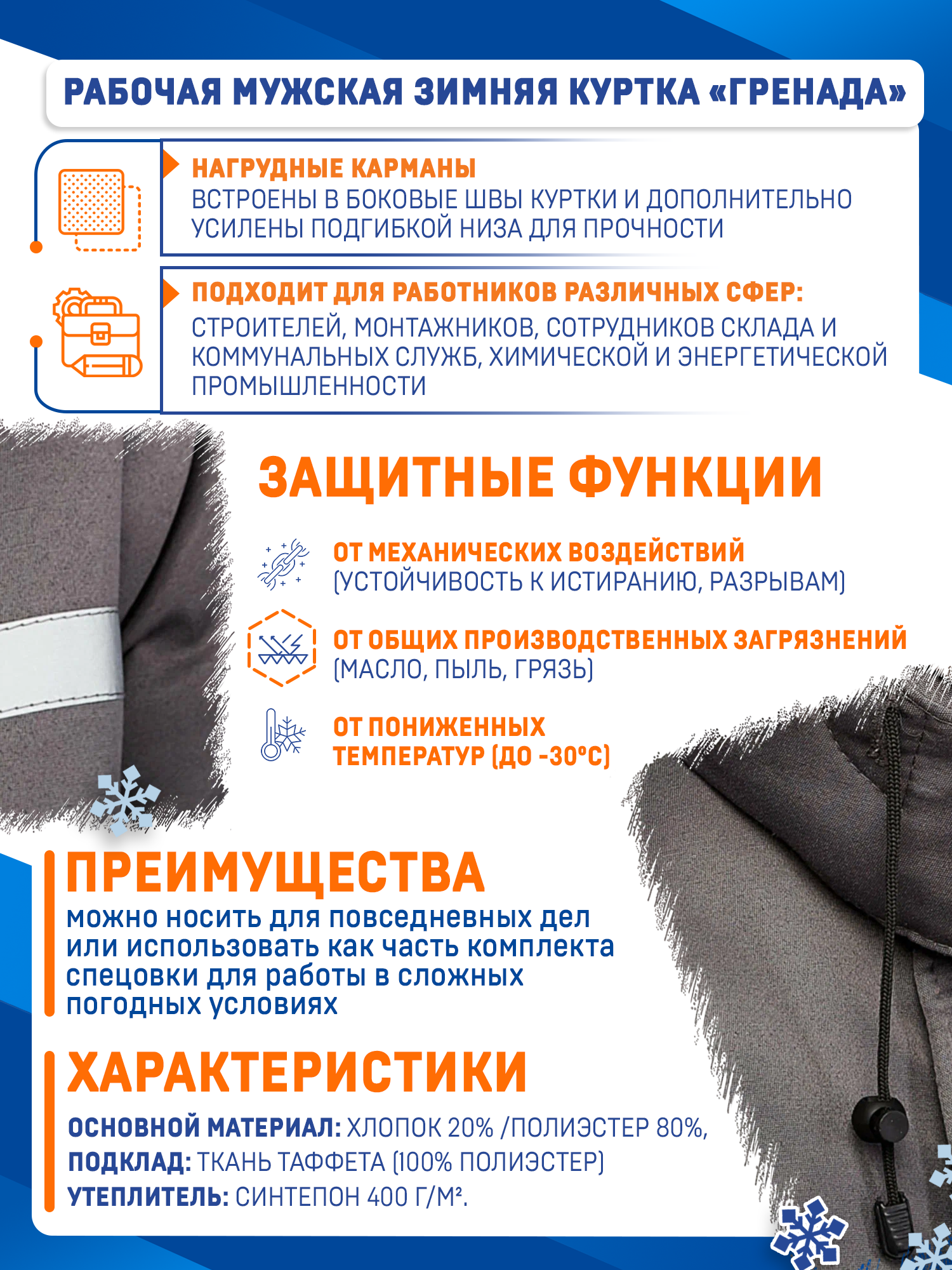 Куртка рабочая зимняя мужская «Гренада» (со светоотражающей полосой): сравнение цен, характеристики, фото, актуальное наличие и цены.