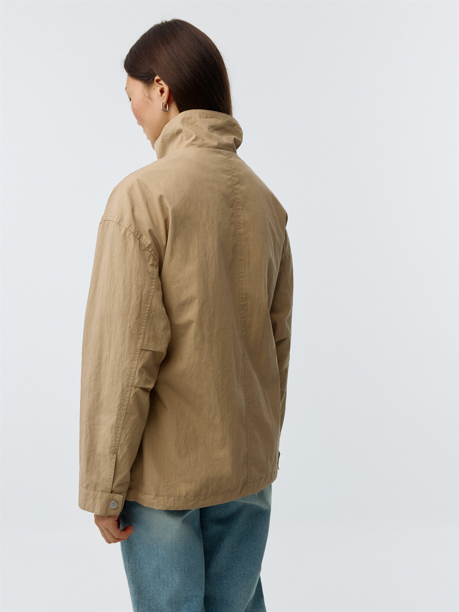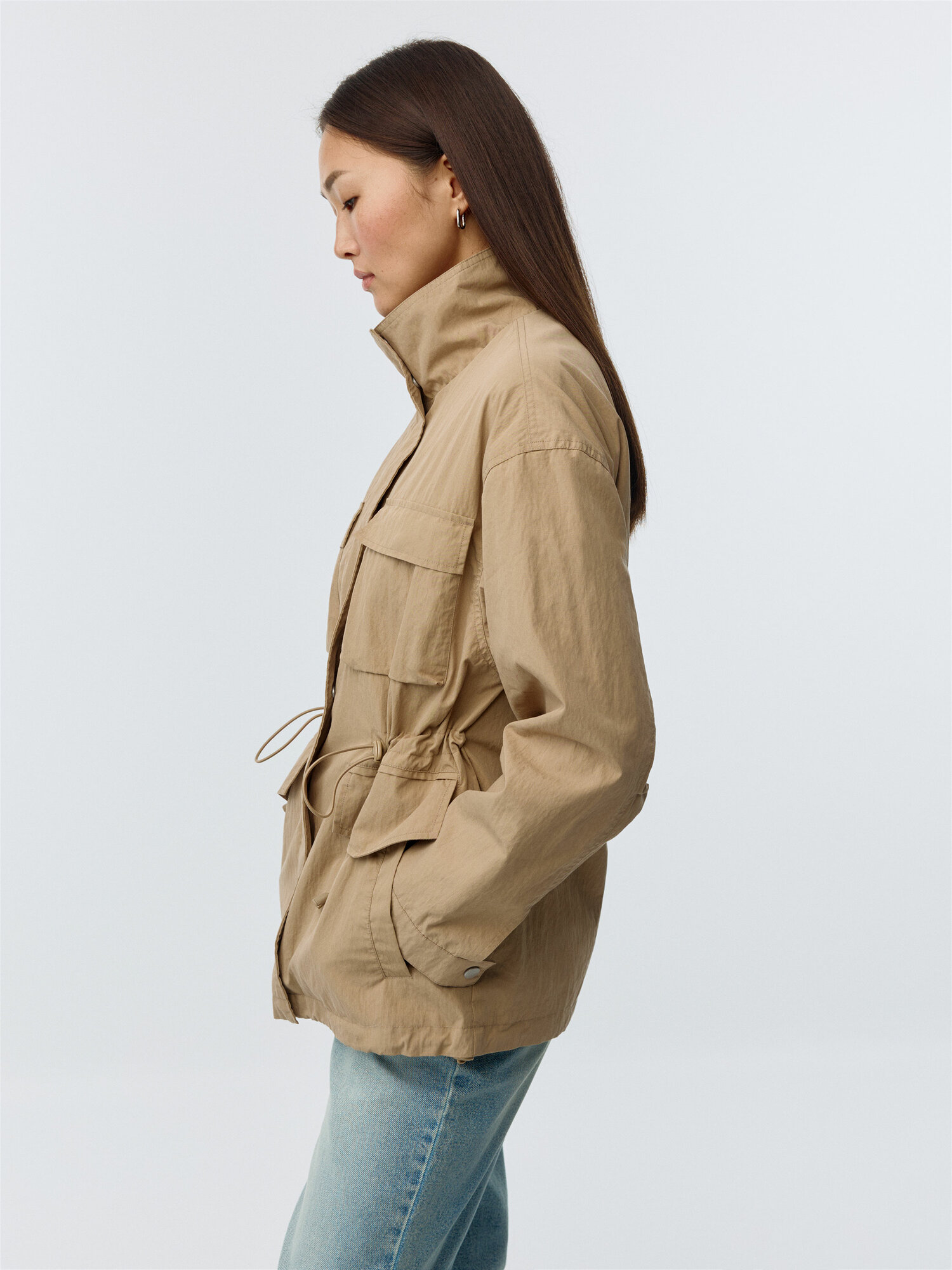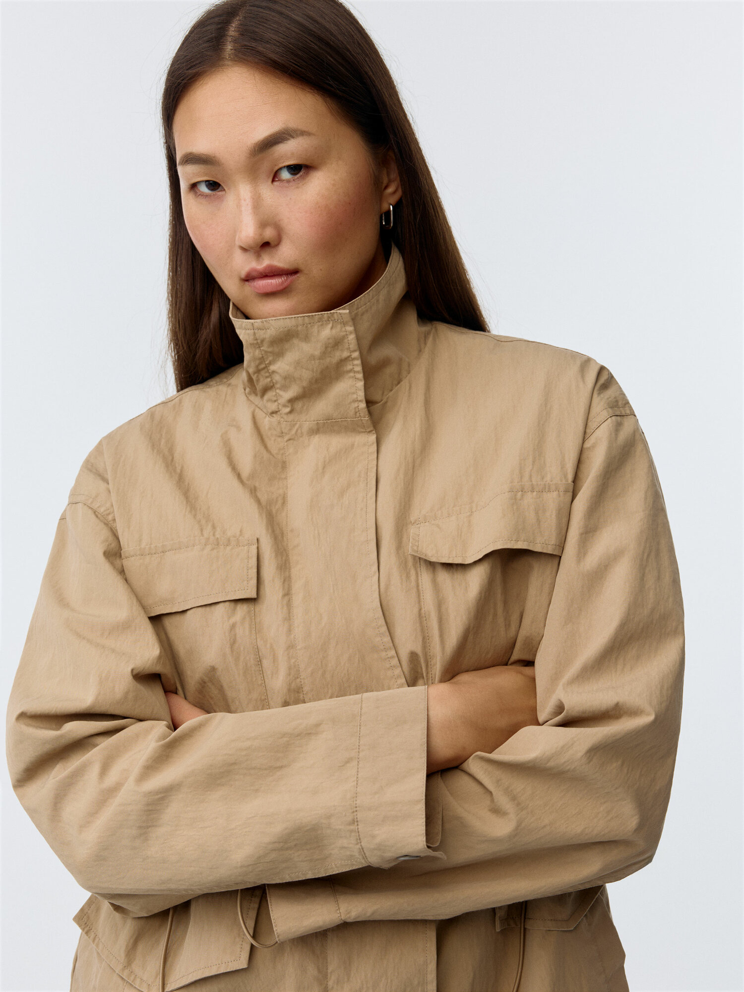 Женская куртка бренда SELA, выполненная из легкой нейлоновой ткани с водоотталкивающей пропиткой. Свободный крой с заниженной линией плеча и объемными длинными рукавами делает эту модель универсальной и подходящей для любой фигуры. Она идеально подходит для тех, кто ценит свободу движений и комфорт в одежде. Модель дополнена высоким воротником, накладными карманами с клапанами, ветрозащитной планкой на кнопках и застёжкой-молнией. Эластичные манжеты и утяжка на талии предотвращают попадание ветра и влаги внутрь куртки. Рекомендованный температурный режим: +15/+20. На модели представлен размер S. Рост модели 175 см.