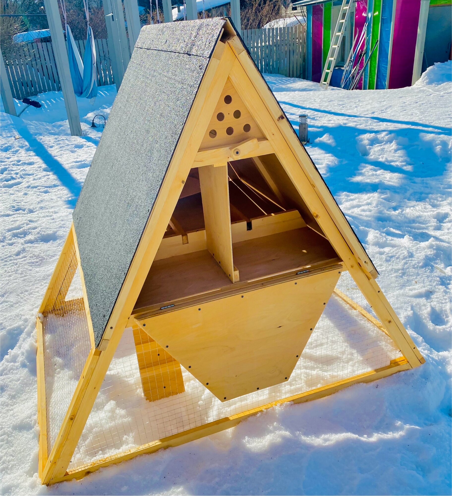 Курятник "Летний КУРрорт" с выгулом для содержания до 8 кур с весны по осень. Он состоит из двух ярусов.