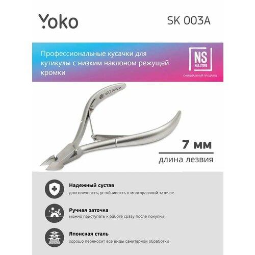 Профессиональные маникюрные кусачки Yoko изготовлены из японской стали, обеспечивающей инструменту высокую прочность, устойчивость к износу, коррозии и всем видам стерилизационной обработки. Качественное производство сустава гарантирует правильное схождение лезвий и долговечную работу инструмента. Режущие кромки проходят несколько этапов обработки и затачиваются вручную. Технические характеристики: Назначение: для кутикул Длина: 105мм Тип соединения: винтовое Тип пружины: двойная Длина кромки: 7. Располагайте кусачки при срезе параллельно коже, с небольшим уклоном. Не давите сильно. Инструмент должен мягко и аккуратно резать кожу, не рвать ее. Если у вас появились заусенцы, не надо их тянуть. Аккуратно подденьте заусенец и срежьте его под самое основание. Не оставляйте торчащую кожицу, иначе она подсохнет и будет напоминать о себе, могут появиться маленькие чувствительные ранки.
