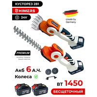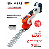 Купить Кусторез 2в1 HIMERS DKS1450B аккумуляторный 24V, 2 АКБ по 6 А. ч, 1450вт, 8000 об/мин, быстроъемные 2 насадки / Бесщеточный с доставкой по всей России.