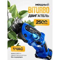 Модель оснащена щеточным двигателем и работает от аккумулятора с напряжением 24 В, что обеспечивает высокую эффективность и мобильность без зависимости от электросети. В комплект входят две сменные АКБ квадратной формы на 21 В 1.3 Ач, что позволяет дольше работать без подзарядки.