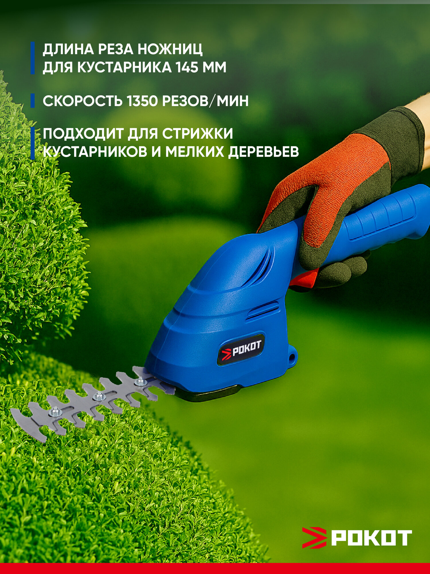 Кусторез аккумуляторный садовый РОКОТ, 60 Вт, 1350 об/мин, з/у type-c/ сучкорез аккумуляторный: сравнение цен, характеристики, фото, актуальное наличие и цены.