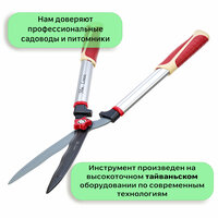 Рукоятки кустореза изготовлены из алюминия, что делает их легкими и прочными. Противоскользящее покрытие рукояток обеспечивает надежный хват и предотвращает случайное выскальзывание инструмента из рук.
