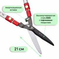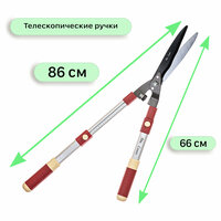 Для работы с высокими кустарниками кусторез оснащен алюминиевыми телескопическими ручками.