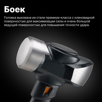 Головка кувалды изготовлена из стали премиум-класса и имеет клиновидную разрушающую поверхность, что позволяет максимизировать разрушительную силу и повысить точность удара.