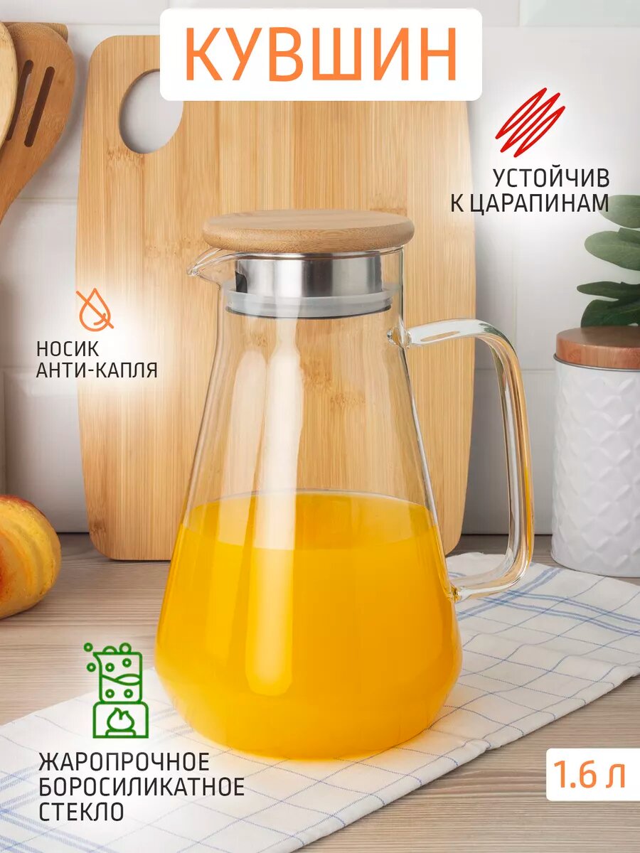 Чайник-кувшин от Astell 1600 мл выполнен из высококачественного боросиликатного стекла, отличающегося повышенной термической прочностью и стойкостью к механическим повреждениям. Графин устойчив к перепадам температуры, что позволит использовать его как чайник заварочный, или как обычный кувшин для прохладительных напитков. Крышка выполнена из нержавеющей стали и натурального бамбука, прочно сидит благодаря силиконовому уплотнителю. В крышке предусмотрены фильтр-отверстия, через которые удобно процеживать напиток, возможны два варианта фильтрации - для напитков без фруктов и добавок и для более тщательного процеживания, например, компот или чай. Носик v-образной формы с конструкцией "антикапля" позволяет разлить напиток по чашкам без случайного проливания. Стеклянная термостойкая ручка не нагревается и не требует использования прихватки. Посуда данной серии подходит для использования в посудомоечной машине.