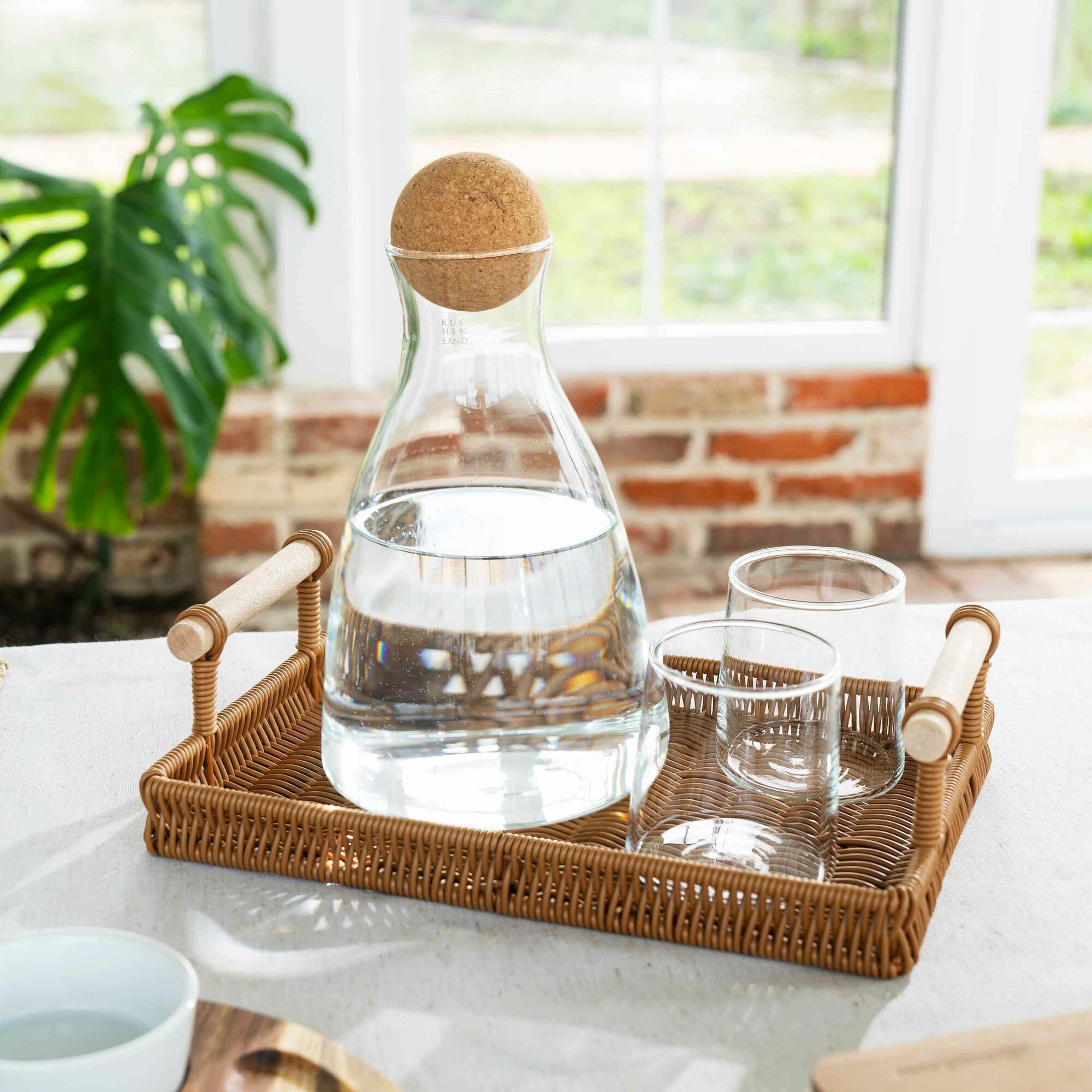 Кувшин с крышкой. Объем: 1,7 л. Материал: термостойкое стекло, пробка. Рекомендуется мыть вручную с применением мягких моющих средств. Не использовать для ухода абразивные чистящие средства и жесткие губки. Кувшин без крышки можно мыть в посудомоечной машине на щадящем режиме для стекла.