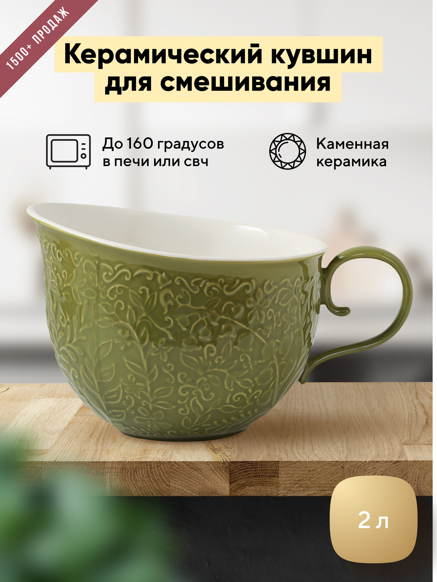 Материал: каменная керамика. Объем: 2 л. Размеры: 25х19,2х15,3 см. Цвет: зеленый.