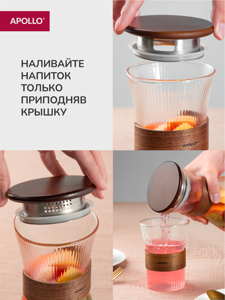 Кувшин с крышкой подходит для ледяных лимонадов и прохладной сангрии в жару, горячего чая или ароматного глинтвейна в зимний уютный вечер. Кувшин и бокалы можно мыть в ПММ при температурном режиме до +30 градусов. Предварительно с предметов сервировки необходимо снять элементы из бамбука. Не бейте и не царапайте внутреннюю поверхность стеклянной колбы ложками или другими приспособлениями.