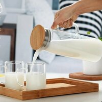 Удобный функциональный кувшин стеклянный для холодных и горячих напитков, объемом 1,5 литра. Корпус чайника-кувшина сделан из термостойкого боросиликатного стекла, которое выдерживает температуру от -20С до +150С. Графин стеклянный для воды можно использовать, как для горячих напитков (чай, глинтвейн), даже в качестве чайника, который можно ставить на плиту, так и для холодных напитков (лимонад, сок). От перепада температур чайник заварочный стеклянный не треснет и не расколется.