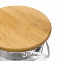 Этот стеклянный графин может использоваться для воды, холодных и горячих напитков, лимонада, и он подходит для дома, офиса и даже кафе. Крышка этого стеклянного графина выполнена из пищевой нержавеющей стали с накладкой из бамбука и оснащена фильтром, который предотвращает попадание мелких частиц, например, листьев мяты, в ваш напиток. Кольцо из пищевого силикона плотно держит крышку при наклоне кувшина и удерживает жидкость внутри. Горлышко колбы графина оптимально для загрузки кубиков льда и нарезанного лимона.