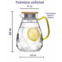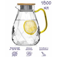 Кувшин из боросиликатного стекла 1800 мл - 1 шт, крышка из стали и бамбука - 1 шт