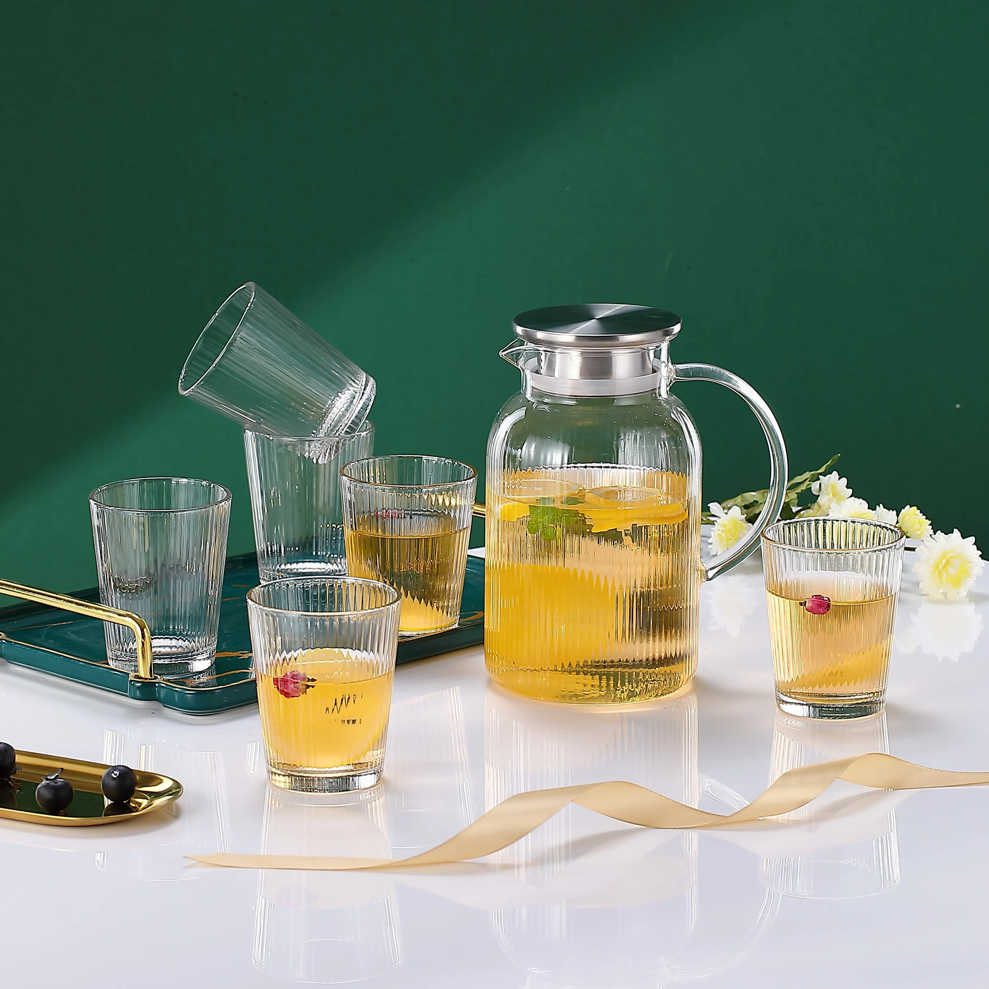 Кувшин выполнен из боросиликатного стекла, что обеспечивает его прочность и долговечность. Материал не впитывает запахи и вкусы, сохраняя свежесть и качество напитков.