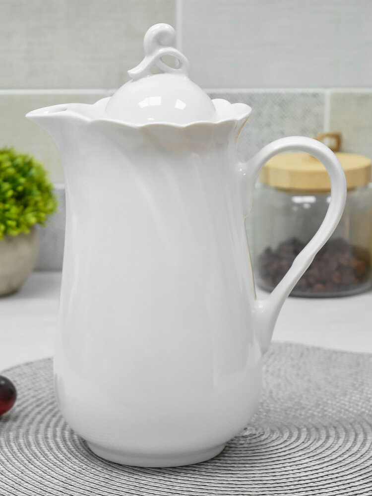 Купить Кувшин фарфоровый с ручкой для воды молока, объем 1,4 литра, Добруш белый ф. Голубка с доставкой по всей России.