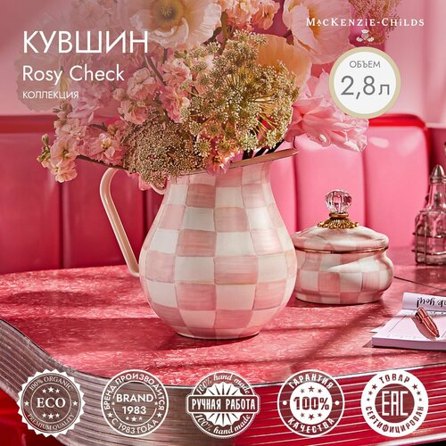 Кувшин, 2,8 литра, MacKenzie-Childs, Rosy Check, для напитков, ваза для цветов, розовая, клетка, металл, эмаль, ручная роспись, премиум посуда: сравнение цен, характеристики, фото, актуальное наличие и цены.