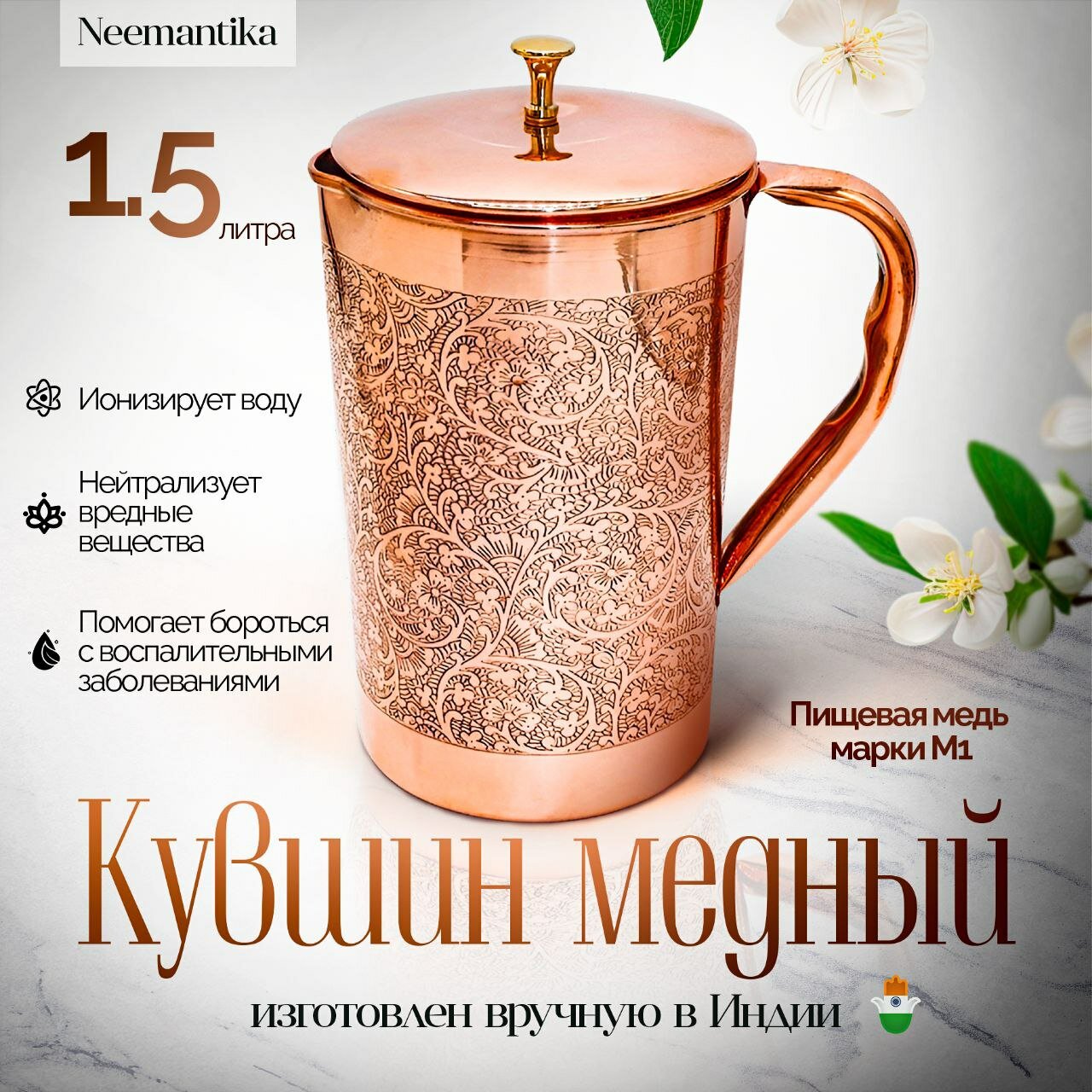 Кувшин медный 1,5л ручная работа медь 100% диаметр 11см*высота 18см (oxan): сравнение цен, характеристики, фото, актуальное наличие и цены.