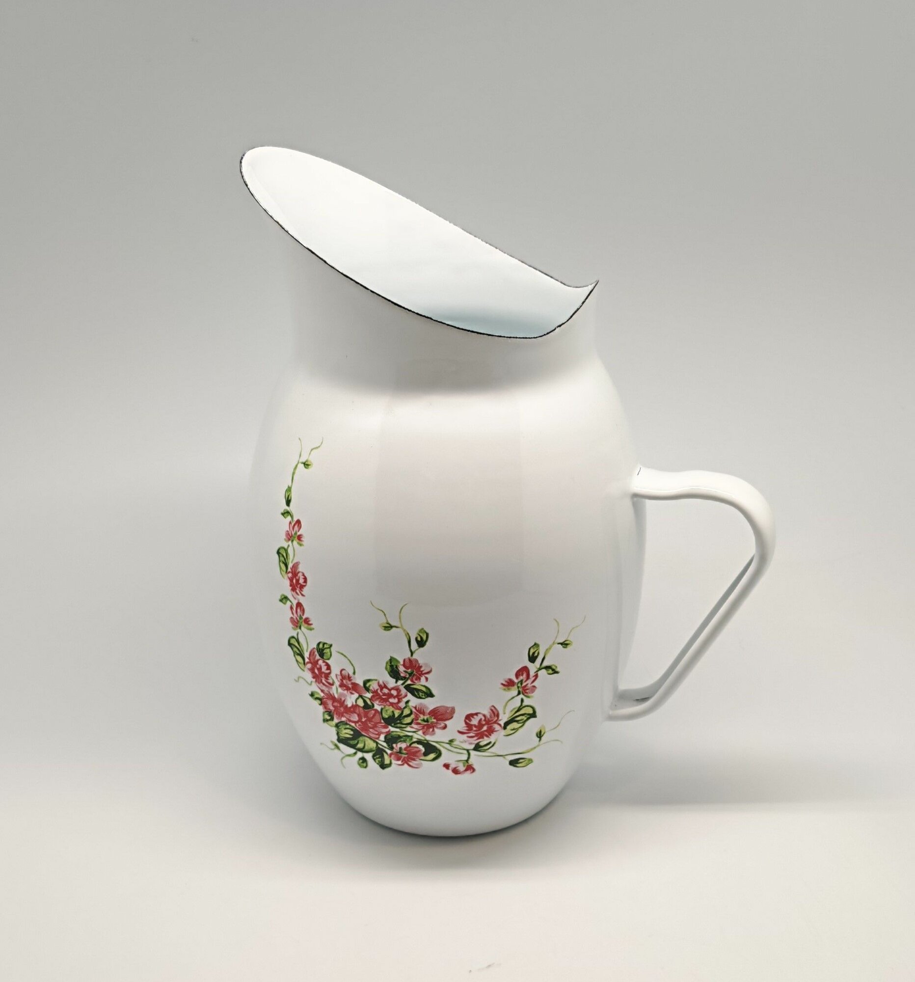 Универсальный кувшин объемом почти три литра станет незаменимым помощником на вашем столе. Прочный металлический корпус с декоративной эмалями выдерживает повседневную нагрузку, а яркие оттенки (белый, зеленый, розовый) добавляют интерьеру свежести. Элегантный принт «цветочки» на фоне белоснежного дизайна создает теплую домашнюю атмосферу. Компактные размеры обеспечивают легкость хранения даже в малогабаритных помещениях.
