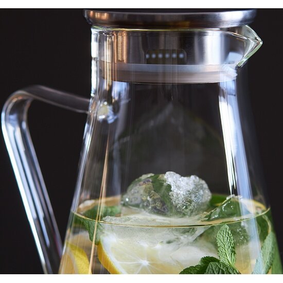 Кувшин Pure выполнен из боросиликатного стекла, что позволяет использовать его не только для холодных, но и для горячих напитков. Вы можете подавать в нем сок, лимонад, морс, компот или чай – особенно эффектно в нем будут смотреться цветные напитки с травами и кусочками фруктов.
