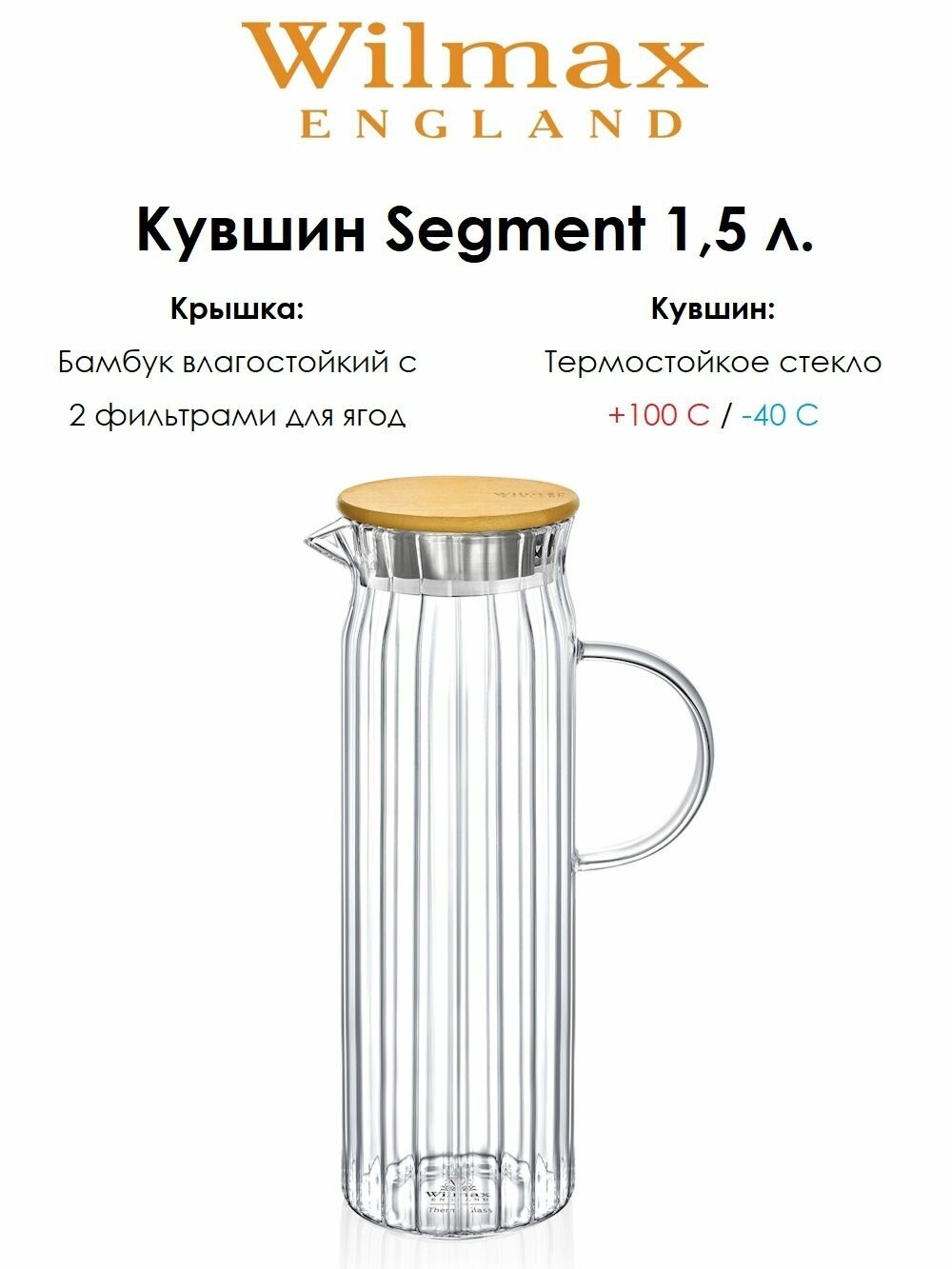 Купить Кувшин Segment с бамбуковой крышкой 1,5 л. Wilmax с доставкой по всей России. Кувшин Segment с бамбуковой крышкой 1,5 л. Wilmax: сравнение цен, характеристики, фото, актуальное наличие и цены.