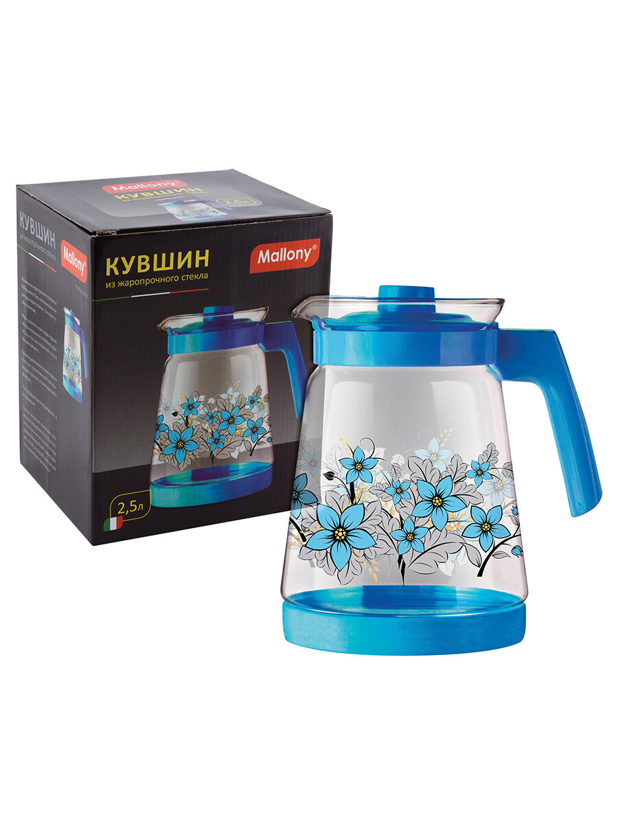 Эргономичная пластиковая ручка синего цвета обеспечивает комфортное удержание и легкость наливания, предотвращая случайные проливы. Дизайн кувшина сочетает в себе стиль и функциональность, что делает его отличным дополнением к любому столу. Благодаря своему объемному формату, кувшин Pentola-2500 подходит для сервировки больших порций напитков — от воды и сока до компотов и лимонадов.