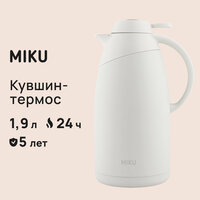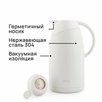 Термос-кувшин MIKU объемом 1,9 литра сохраняет температуру горячих и холодных напитков до 24 часов. Термометр в крышке показывает, насколько горячим или прохладным остается напиток внутри.