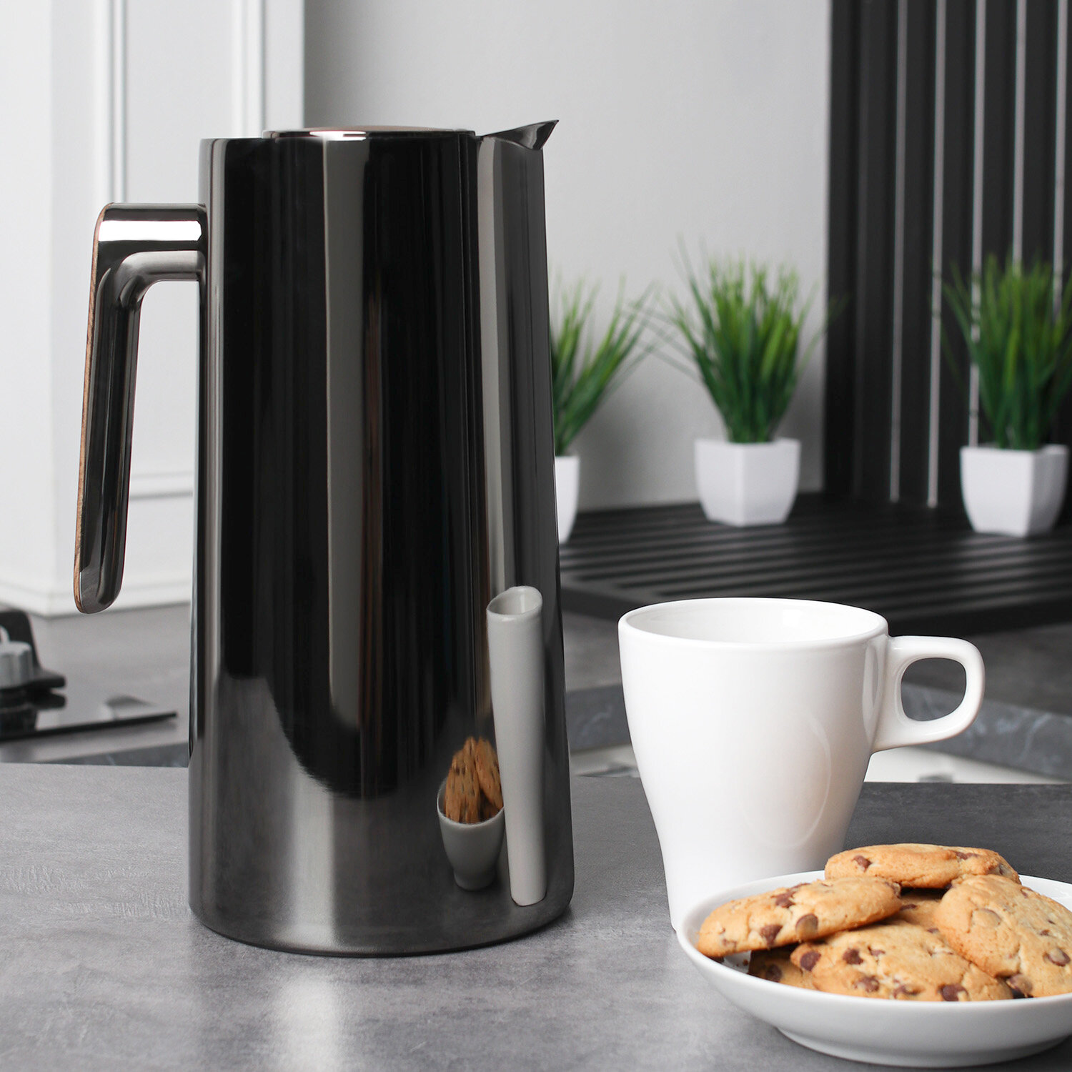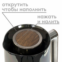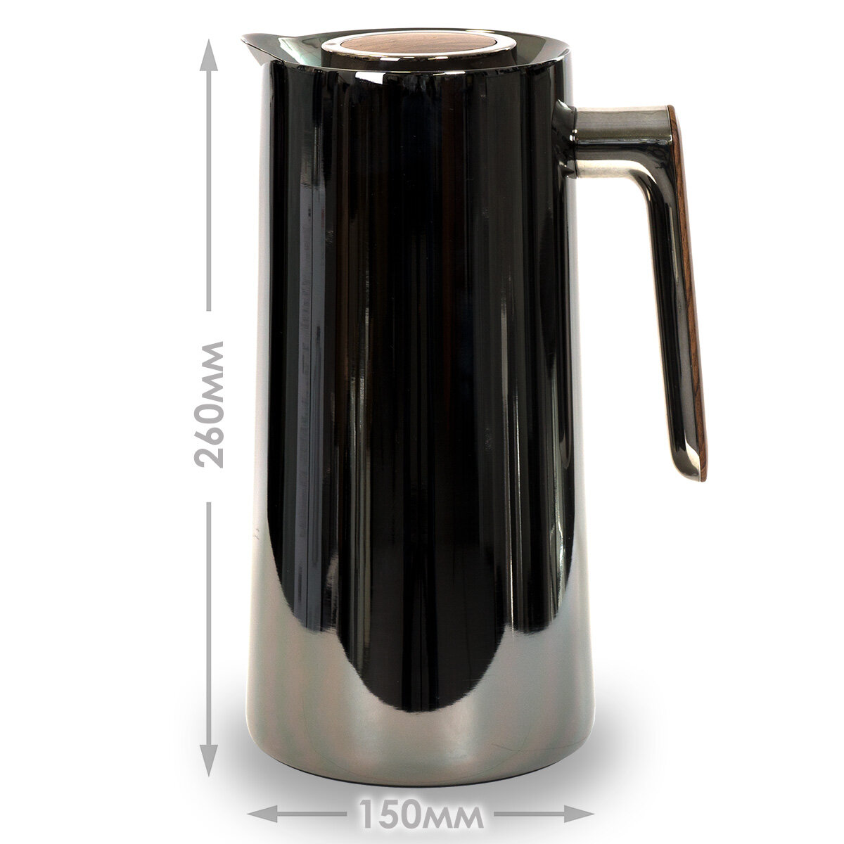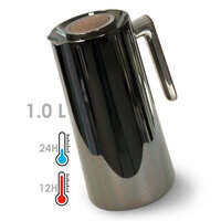 Модель премиум качества! Предназначен для приготовления и сохранения горячих и холодных напитков дома, на даче и в путешествиях. Стильный дизайн и высокое качество термоса не оставит никого равнодушными. Вакуумная прослойка колбы термоса позволяет сохранять температуру горячей воды достаточной для заваривания чая в течении 12 часов и до 24 часов горячей по ощущению. Холодная вода сохраняет свою температуру до 24 часов. Термос в виде кувшина имеет откручивающуюся крышку, куда заливается напиток, а также кнопочный клапан, который открывает и блокирует подачу напитка через носик. Внутренняя вакуумная колба, позволяющая сохранять температуру, выполнена из высококачественного и высокопрочного пищевого стекла, не содержащего асбест и другие вредные примеси. Корпус полностью выполнен из металла. Термос имеет удобную ручку, которая делает наливание напитка более комфортным. Объем: 1 литр Высота: 26 см. Ширина с учетом ручки: 16 см. Перед применением рекомендуется предварительно ополоснуть термос горячей или холодной водой (нагреть или охладить) в зависимости от того, какой температуры напиток планируете залить в термос, для обеспечения более эффективного использования. Нельзя использовать в посудомоечной машине. Внутреннюю емкость необходимо периодически чистить при помощи ершика и специальных средств для мытья посуды или соды. Термос имеет систему проверки подлинности с помощью QR-кода. Состав: Сталь, пластик, стекло.