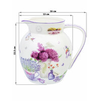 Кувшин серии «Лаванда» объемом 1,2 л украсит сервировку стола, выполнен из высококачественного костяного фарфора нового поколения, благодаря современным технологиям фарфор New Bone China не уступает традиционному костяному фарфору в прозрачности, белизне и прочности, но при этом гораздо экологичнее в производстве. Кувшин вместительный, изящной формы, с удобной ручкой и нежным рисунком с особенным летним настроением — цветы лаванды как будто приносят нежный аромат и наполняют кухню атмосферой Прованса. Кувшин упакован в прочную упаковку. В серии «Лаванда» также представлены другие товары для сервировки стола — чайники, кружки, заварочные кружки, тарелки и многое другое. Собирая серию, можно наполнить ваш дом прекрасной качественной посудой, создающей удивительное нежное летнее настроение.