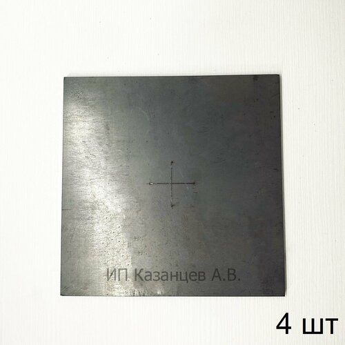 Пластины изготовлены на высокоточном оборудовании, а именно на станке для лазерной резки металла. Выполнены из углеродистой стали обыкновенного качества. Толщина: 3 мм, 5 мм, 8 мм. Размеры: 100х100 мм,150х150 мм, 200х200 мм, 250х250 мм. На пластине выполнена разметка центра.
