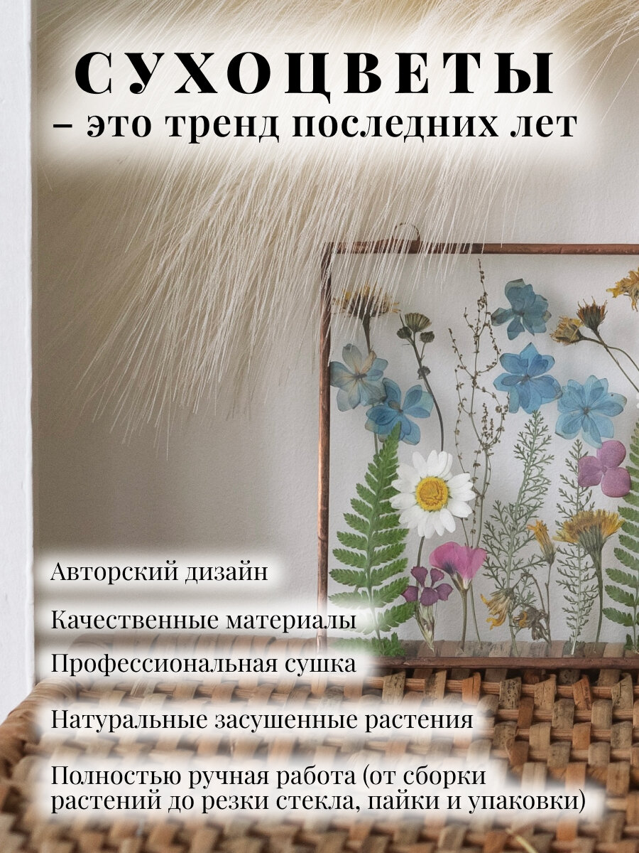 Внимание! Изделие с гербарием необходимо беречь от прямых солнечных лучей, тогда цвет сохранится на долгие годы.