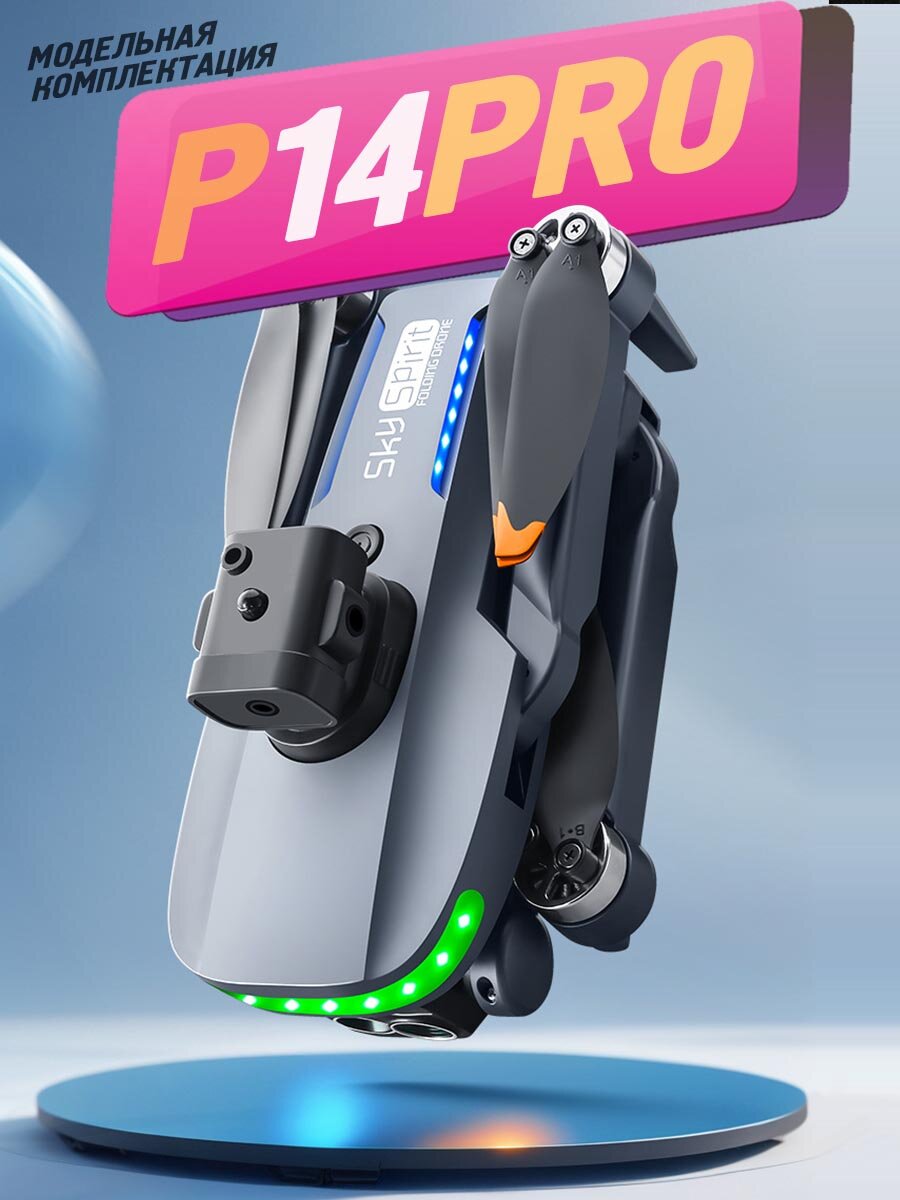 Купить Квадрокоптер с камерой P14 Pro, серый, складной, пульт, 4 АКБ с доставкой по всей России.