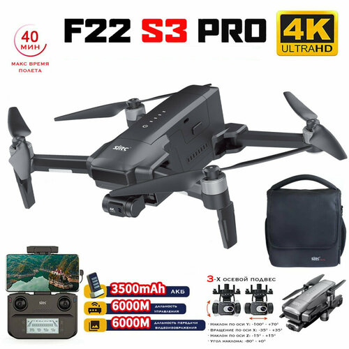 Квадрокоптер SJRC F22 S3 PRO 3-AXIS 4K EIS 5G GPS - F22 S3 PRO - это обновленная версия, которая получила новейшую Ultra HD (4k) камеру с передачей видео до 6000 м, которая установлена на 3-х осевом подвесе. За счет этого видео будет плавным, без рывков и отклонений. Дальностью полета теперь увеличена до 6000 м. Удобный складной форм-фактор позволит удобно перевозить и хранить коптер.