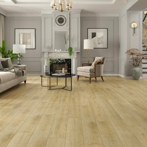 Кварц-виниловый ламинат (SPC) Tulesna OTTIMO 1004-16 (1220х183х4) Flori 2,23 м2 с плавающим типом соединения (click-замок) предполагает бесклеевой монтаж, увеличивает допуски по неровностям для основания (до 2 мм на (2) п.м). Можно укладывать на любые стабильные, прочные и сухие поверхности (в том числе — на старый пол). Стабильность геометрических размеров SPC плитки допускает укладку на площади единым контуром до 500 м2 без разрывов (компенсационных швов). Приспособлен для укладки популярным напольным рисунком "Классическая елка", "Диагональная укладка", "Палуба".