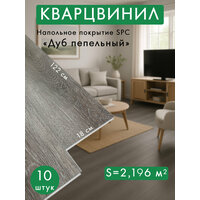 Кварц виниловый ламинат водостойкий Покрытие напольное SPC 1220х180х4мм упаковка 10 шт./2.196 м2 NordWood Дуб Пепельный Artiva