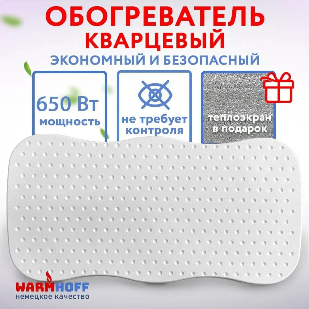 Кварцевый обогреватель Warmhoff Premium 650 Вт + теплоотражающий экран в подарок - комфорт и надежность, идеальное решение для эффективного и экономичного обогрева помещения. Обогреватель для дома, дачи и теплицы прост в установке, его легко разместить на полу или на стене благодаря универсальной конструкции. Источник тепла очень теплоемкий, долго отдает тепло в помещение.