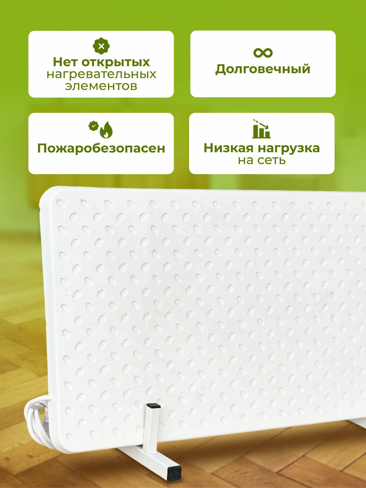 Благодаря инновационным технологиям, обогреватель не только экономно потребляет электричество и является энергосберегающим, но и эко-дружелюбным выбором для вашего дома. Тепло, которое он излучает, обогревает комнаты, не сушит воздух, сохраняя комфортную среду для дыхания.