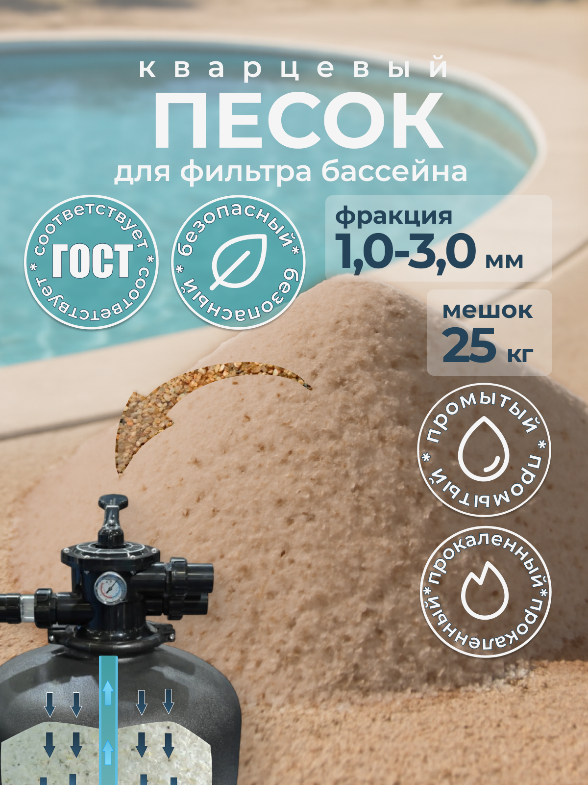 Кварцевый песок 25 кг, фракция 1.0-3.0 мм для фильтра бассейна: сравнение цен, характеристики, фото, актуальное наличие и цены.