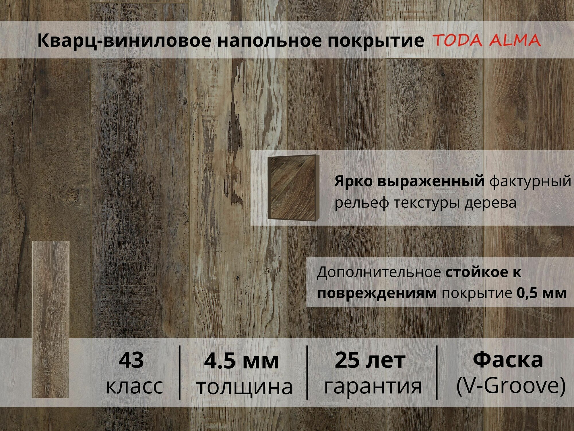 Купить Кварцвинил ламинат spc 43 класс, Дуб темно-бежевый Кантри Рустик 4.5 мм TODA ALMA с доставкой по всей России.