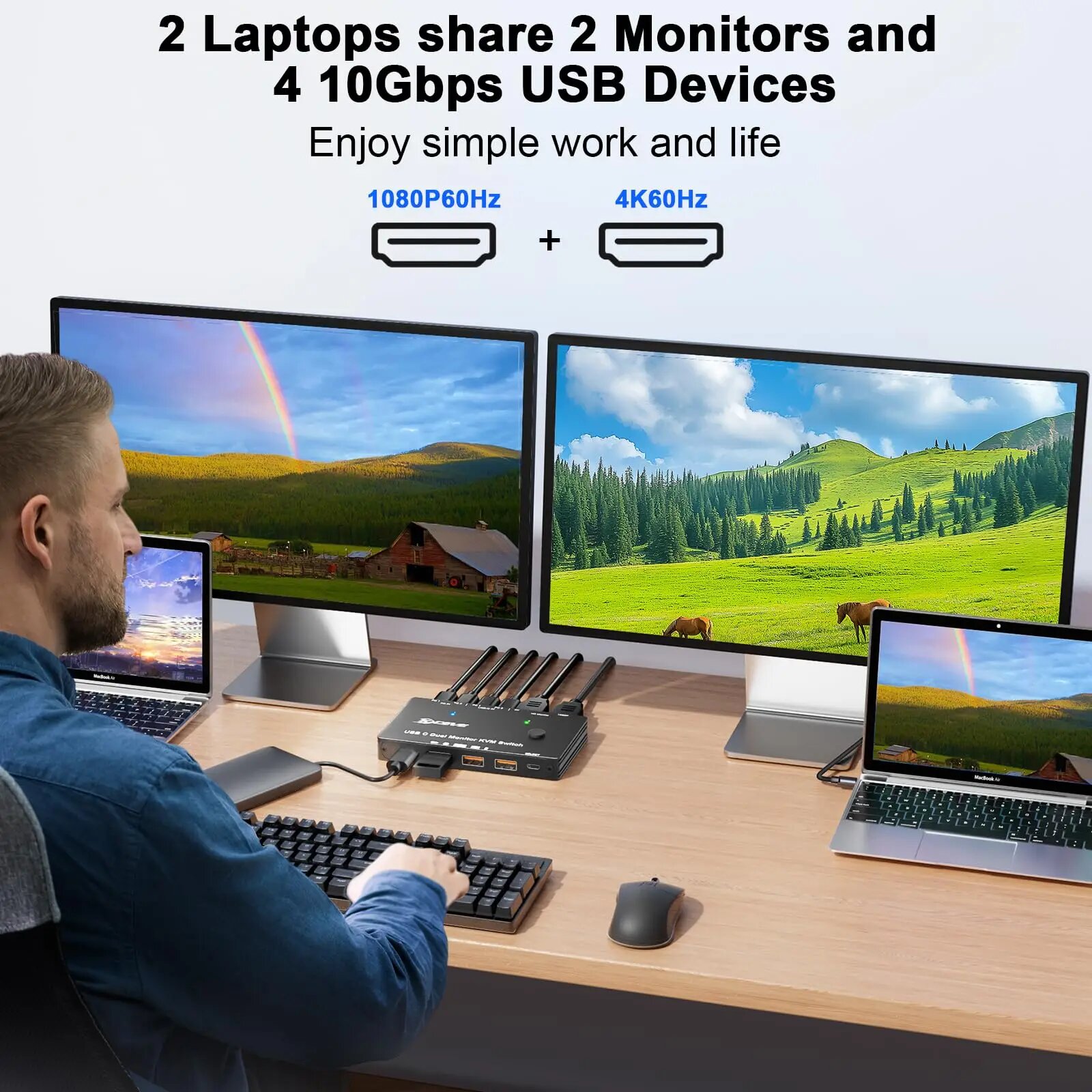 Купить KVM-переключатель 4K/1080P при 60 Гц, KVM-переключатель с двумя мониторами USB C для 2 совместных с ноутбуками, 2 монитора и 10 Гбит/с, 4 устройства USB3.0, USB C Switch с доставкой по всей России.