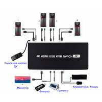4 Port KVM SWITCH HDMI USB - 4 Портовый КВМ переключатель- позволяет управлять одним или несколькими компьютерами (до 4)