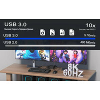 Переключатель добавляет 3 порта USB 3.0 со скоростью передачи данных до 5 Гбит/с, совместим с USB 2.0/1, а также поддерживает отдельные аудиовыходы и микрофонные выходы. Вы можете пользоваться мышью, клавиатурой, жестким диском, принтером, стереосистемой и т. д.