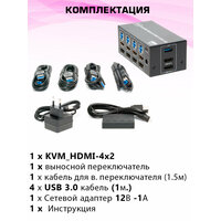 Переключатель позволяют четырем компьютерам использовать 2 монитора HDMI и 3 порта USB 3.0, такие как мышь, клавиатура, принтер, (убедитесь, что каждый подключенный компьютер поддерживает многоэкранный дисплей и 2 порта HDMI)