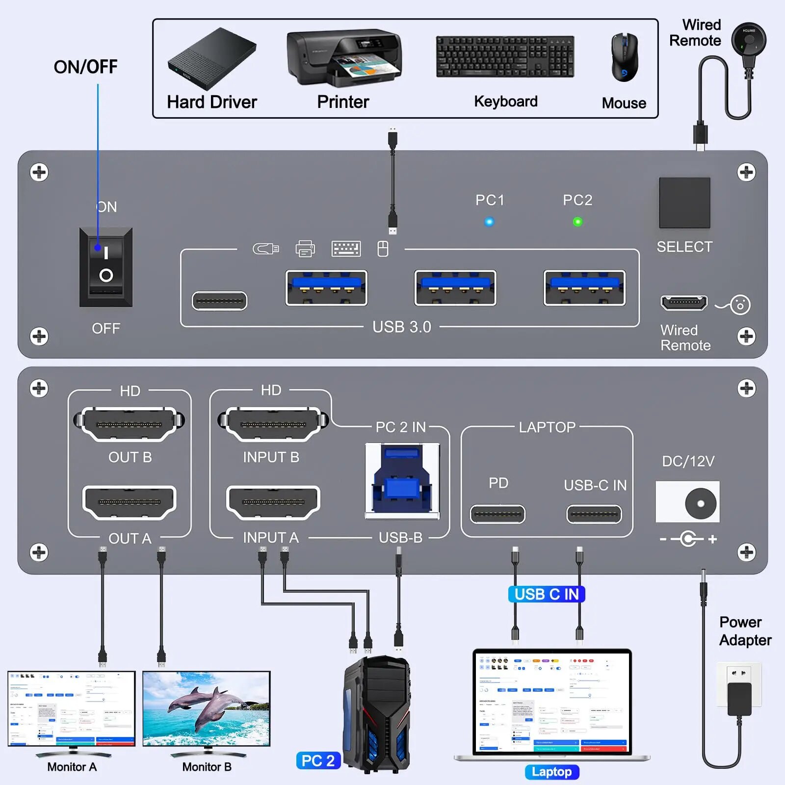 Купить KVM-переключатель с двумя мониторами для ноутбуков и настольных компьютеров 4K при 60 Гц, USB C и HDMI KVM-переключатель 2 монитора 2 компьютера с 4 портами USB 3.0, US POWER PLUG с доставкой по всей России.