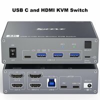 KVM-переключатель с двумя мониторами для ноутбуков и настольных компьютеров 4K при 60 Гц, USB C и HDMI KVM-переключатель 2 монитора 2 компьютера с 4 портами USB 3.0, US POWER PLUG: сравнение цен, характеристики, фото, актуальное наличие и цены.