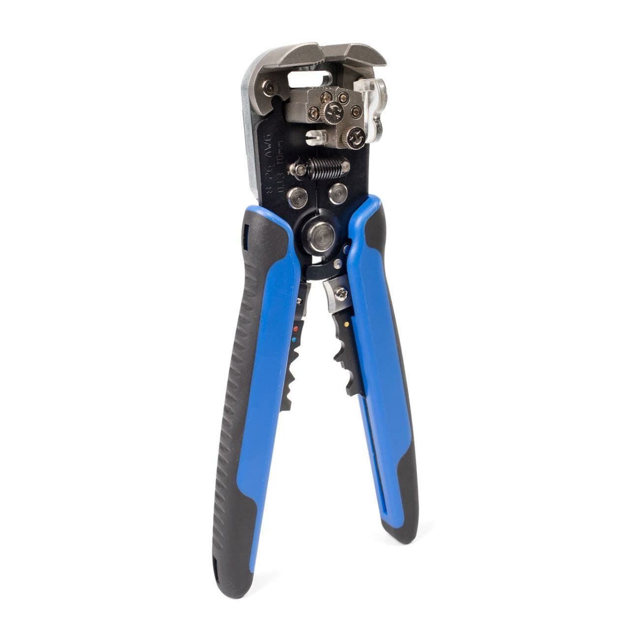 окно для сброса обрезков изоляции, ограничитель длины снятия изоляции, винт микронастройки, усиленные прижимные губки, возможность частичного снятия изоляции, автоматическая настройка на размер провода, возвратная пружина