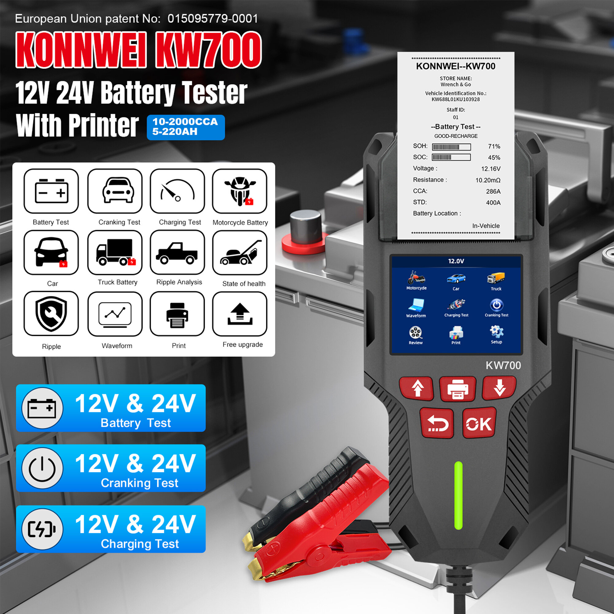 KW700 12V 24V автомобиль & грузовик батарея тестер с принтером, анализатор батареи, кранкинг тест, зарядки тест: сравнение цен, характеристики, фото, актуальное наличие и цены.